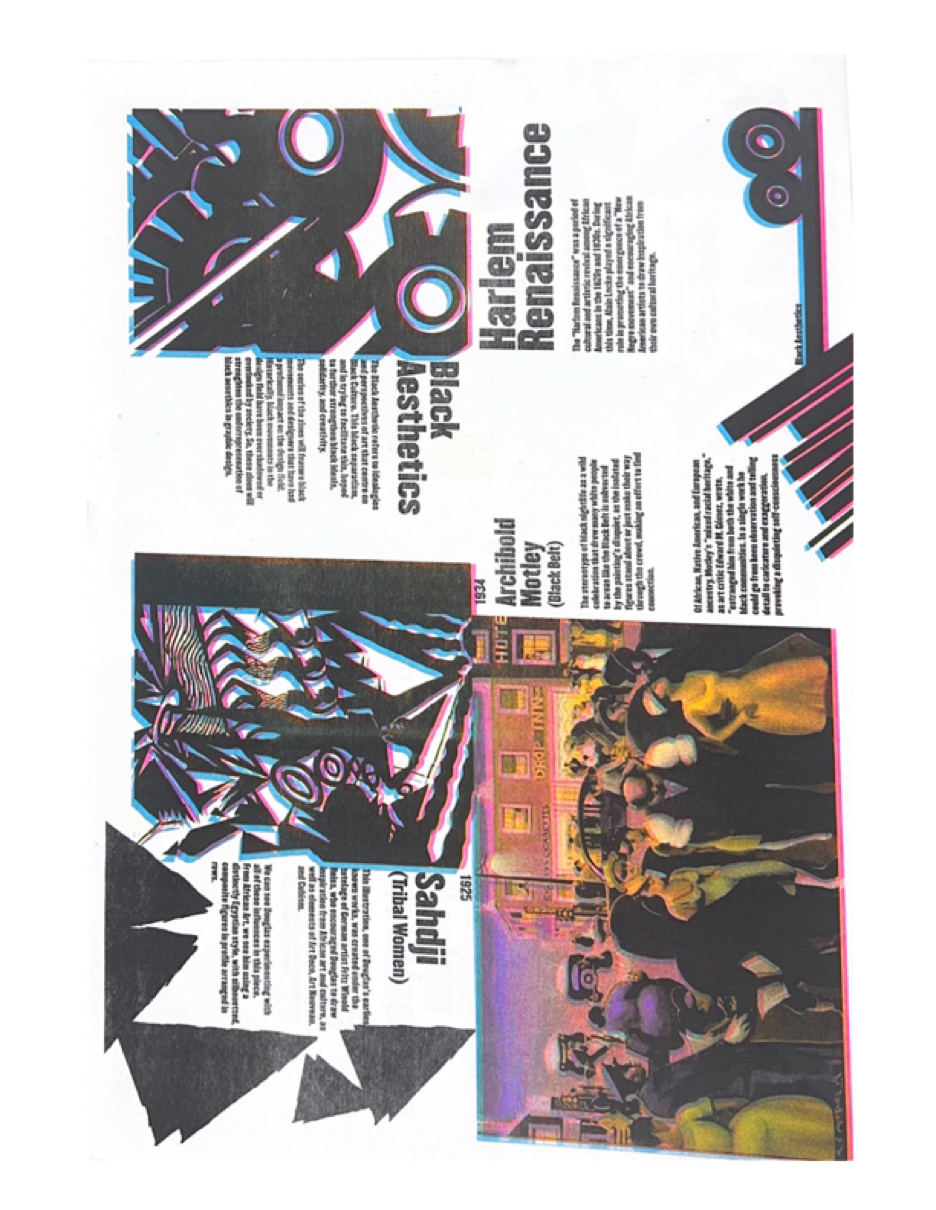 Black-owned journals were the best examples of this African aesthetic in the designs of the 1920s. The designers of these publications were often black artists who were influenced by European cubist painters, who, in turn, were influenced by African art. The African aesthetic was characterized by bold geometric shapes and vivid colours that were inspired by the art of African cultures. One of the best artists/designers of this era was Aaron Douglas, one of the pioneers of the African aesthetic who learned to recognise and resonate with the African in cubism. His designs were characterized by bold geometric shapes, strong horizontal and vertical lines, and vibrant colours. Douglas' work was widely recognized for its unique style and successfully captured the essence of the African aesthetic.