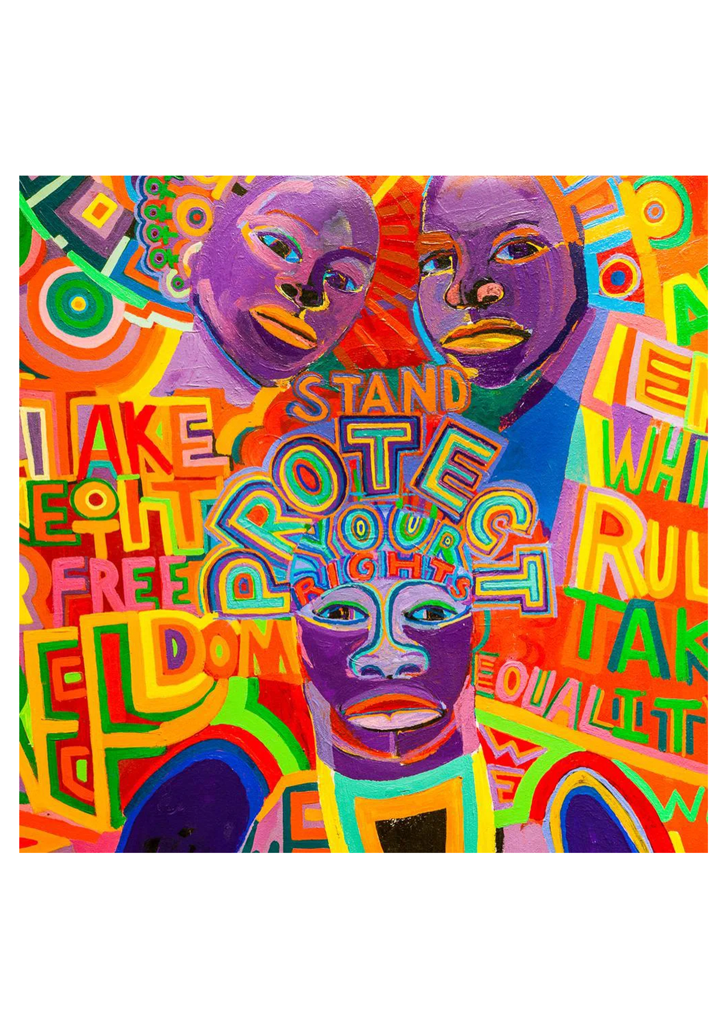 AFRI Cobra (The African Commune of Bad Relevant Artists) is a visual art collective founded in Chicago in 1968. The group emerged as part of the Black Arts Movement, which sought to create art that reflected the experiences and cultural heritage of black people, in contrast to the dominant Eurocentric artistic tradition. AFRI Cobra artists sought to create a new visual language that would capture the vitality and power of African and African American culture. AFRI Cobra’s art is characterised by bold colours, strong lines, and graphic shapes. The group’s work often incorporates images and symbols from African and African American culture, such as the Ankh, the African continent, and the Black Power fist. The artists of AFRI Cobra sought to create art that was both aesthetically powerful and politically relevant. They saw their work as a form of activism, using art to promote black pride and empowerment.